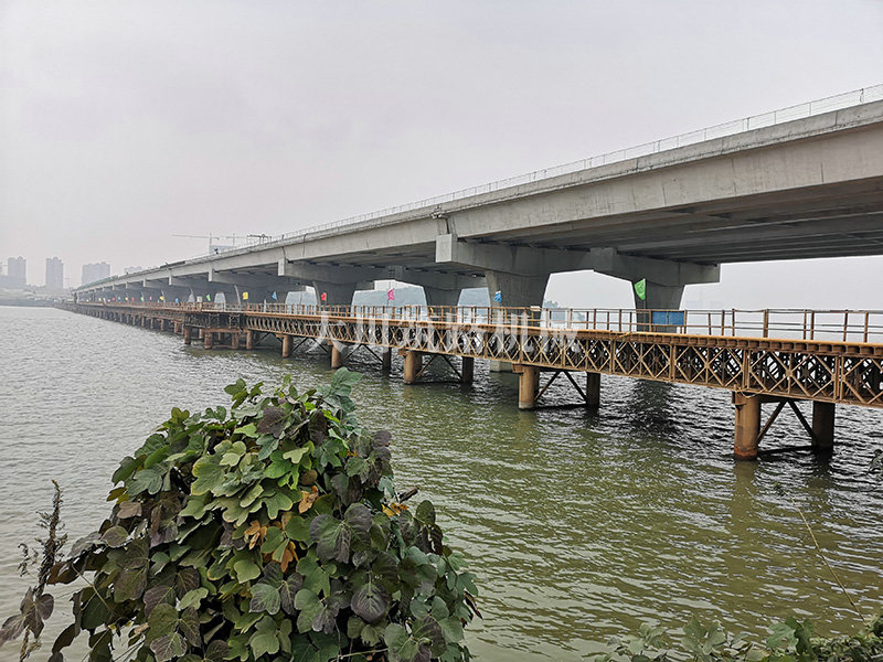 棧橋型號:1200m*6m上承式棧橋及50m*50m施工平臺。